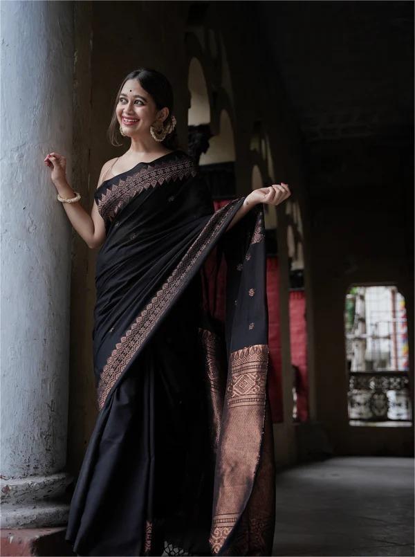 | Name : | MF 1950 BLACK BANARASI SOFT LICHI SILK SAREE |