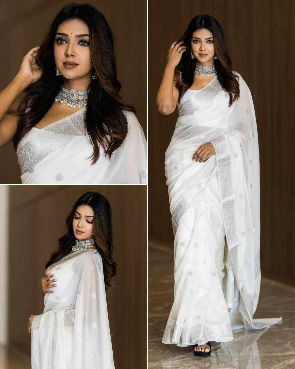 | Name : | KP-R 120 BEAUTIFUL SOFT LILAN White Saree |