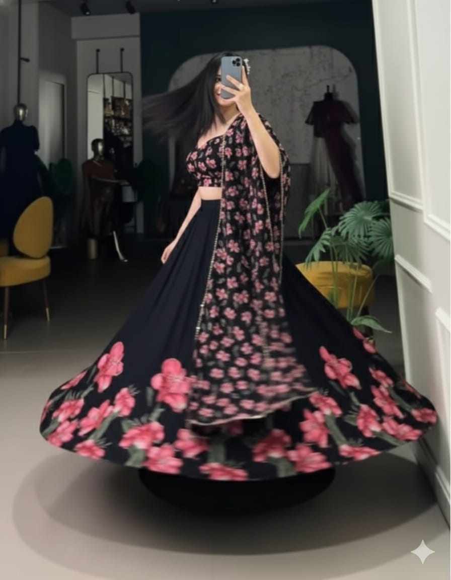 | Name : | PIYU 27-1 Silk Digital print Black Lehnga |