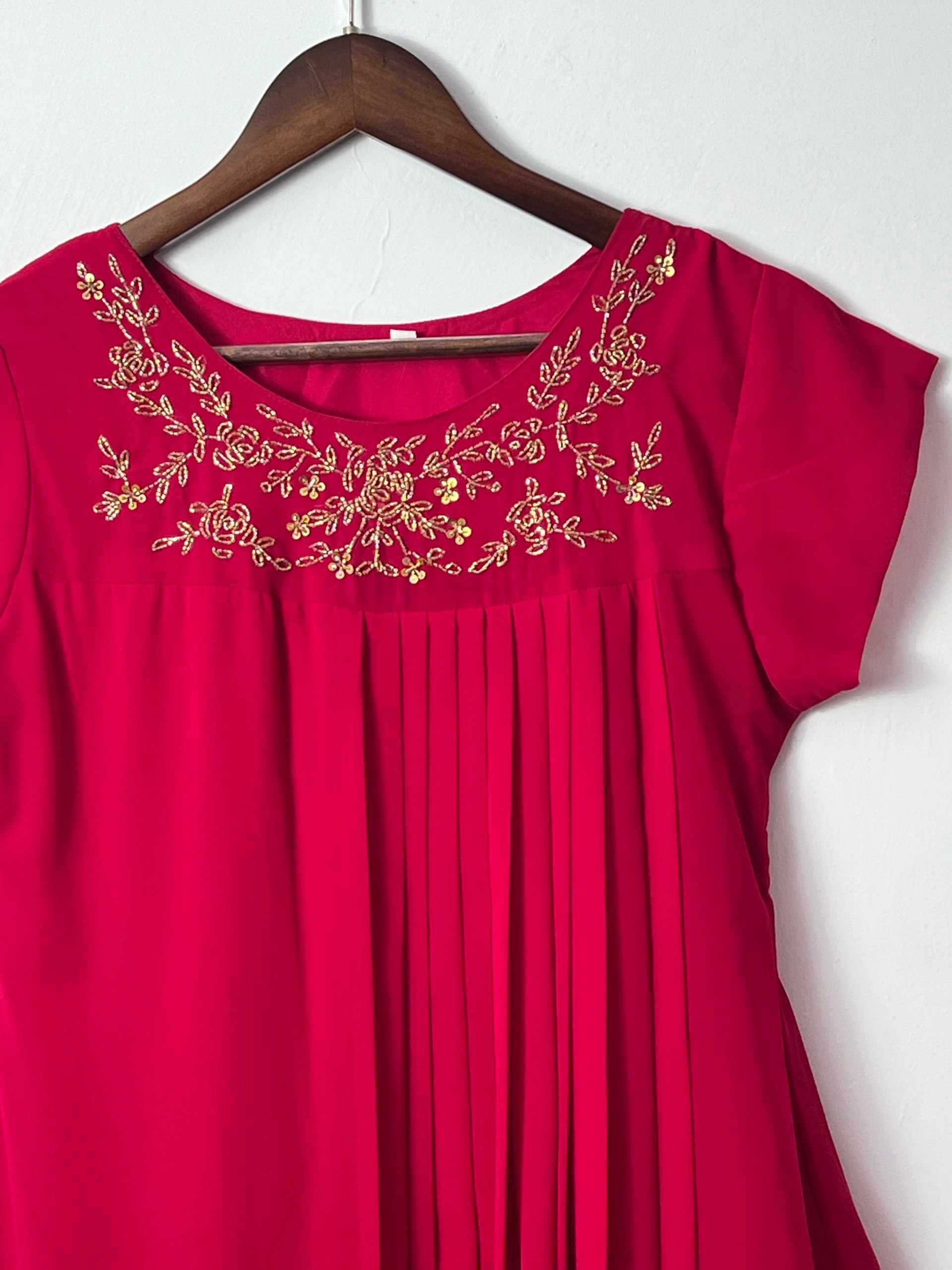 FABRIC - Blooming Georgette Handwork Kurti with Cap Designer Sleeves (Khatli - Maggam Wo